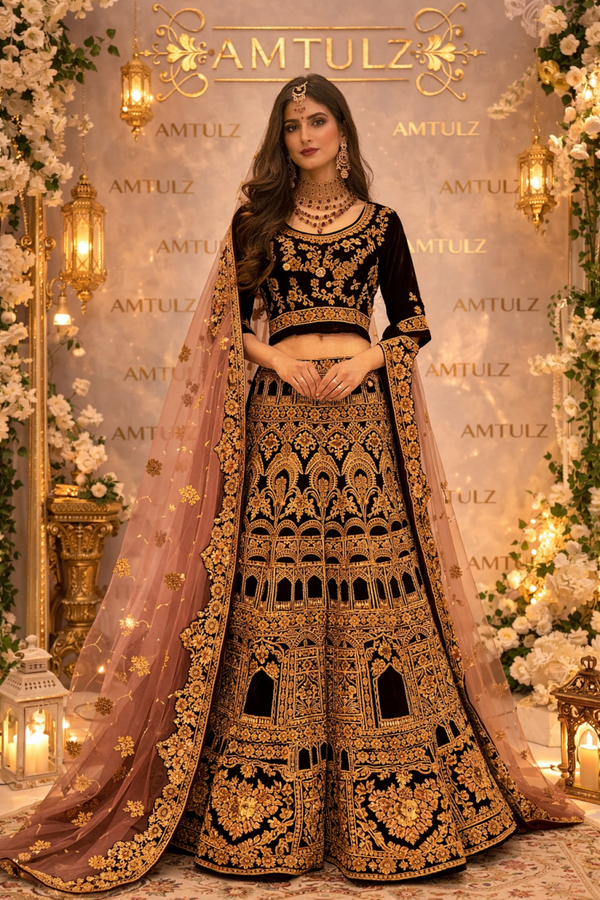 Velvet Lehnga and top with net dupatta