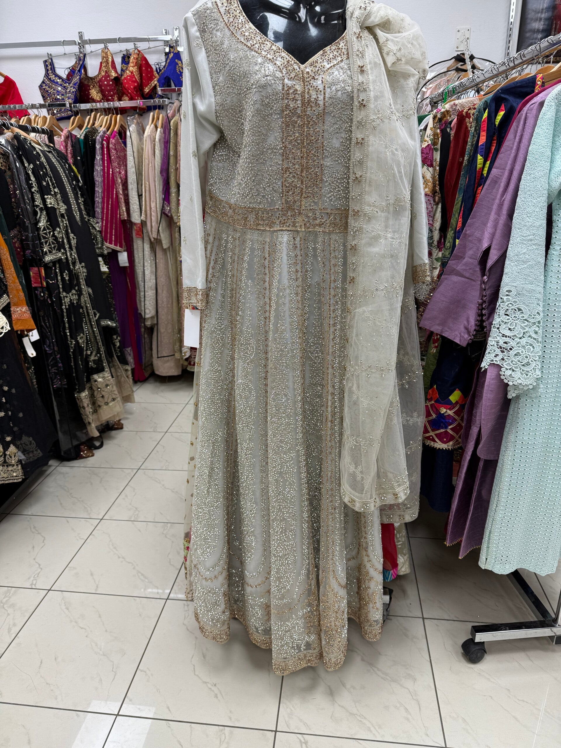 Elegant dress featuring intricate hand-embellished crystal embroidery, perfect for weddings and festive occasions. Its luxurious fabric, detailed craftsmanship, and timeless silhouette make it an ideal choice for bridesmaids, wedding guests, and special celebrations.